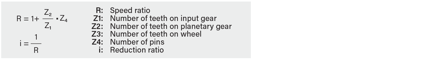 The reduction ratio i, which is the sum of the 1st and 2nd reduction parts, differs between output flange rotation and frame rotation.