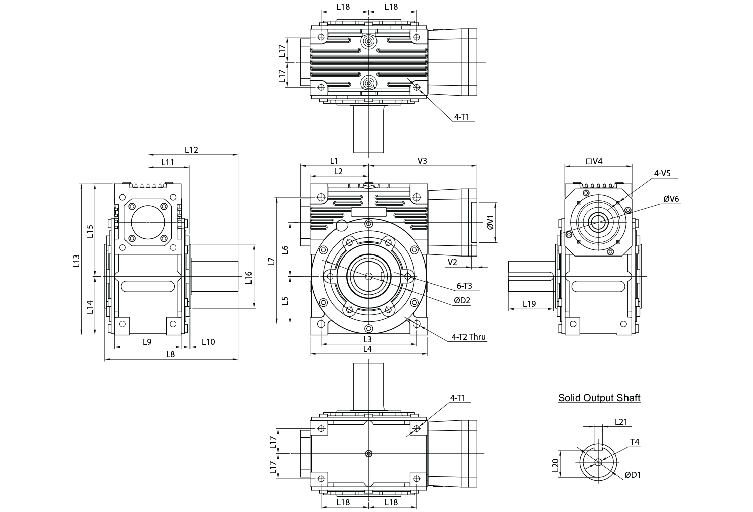 EJL 200 Dimensions – Solid Output Shaft – Single Only