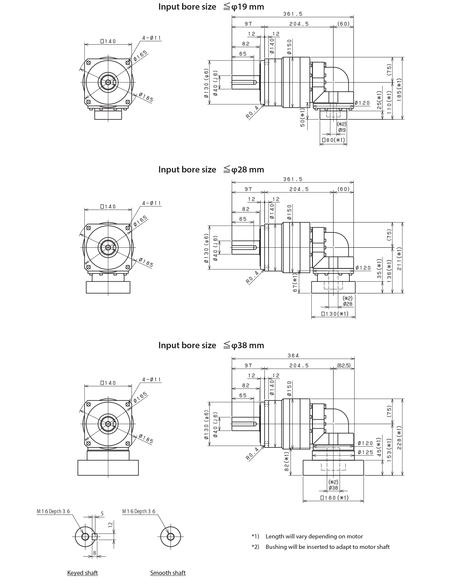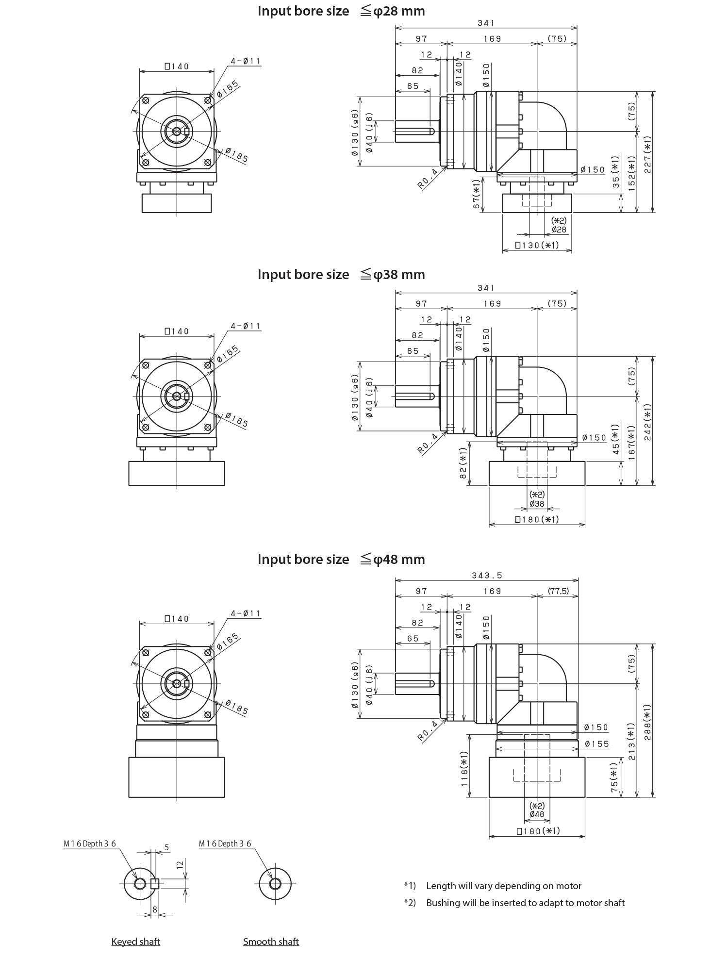 Our motor mounting codes can be configured automatically using our online selection tool. These tables supply the details behind these codes. The tables start with Input Bore measurement and the Part # Code, which are indicated at the end of every model code.