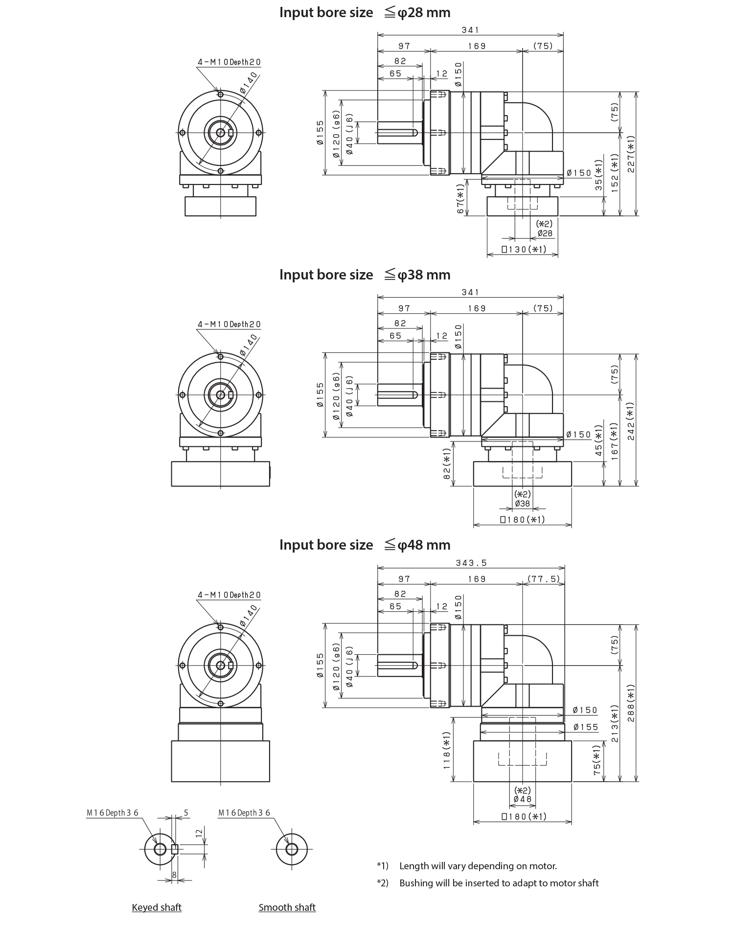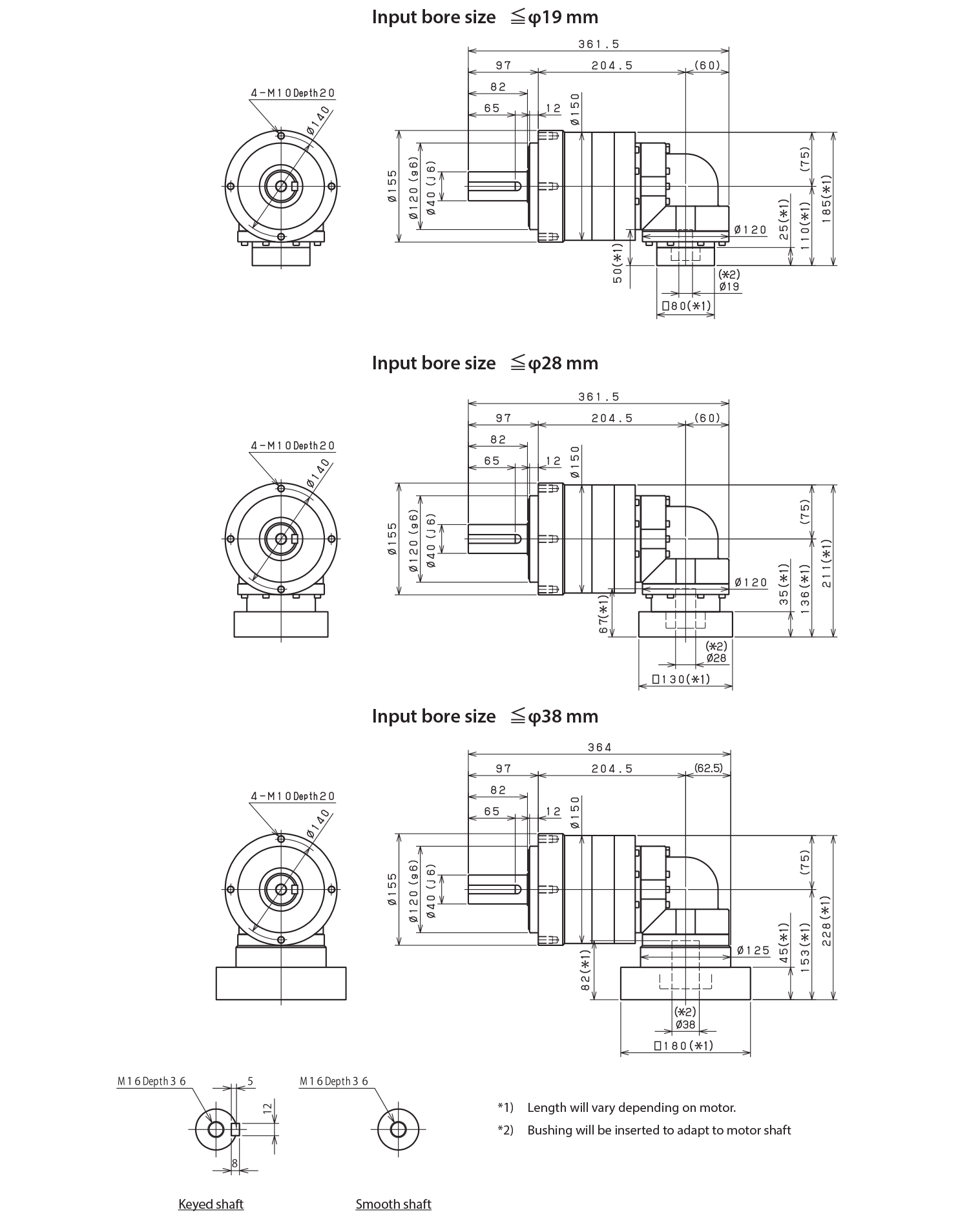 Our motor mounting codes can be configured automatically using our online selection tool. These tables supply the details behind these codes. The tables start with Input Bore measurement and the Part # Code, which are indicated at the end of every model code.