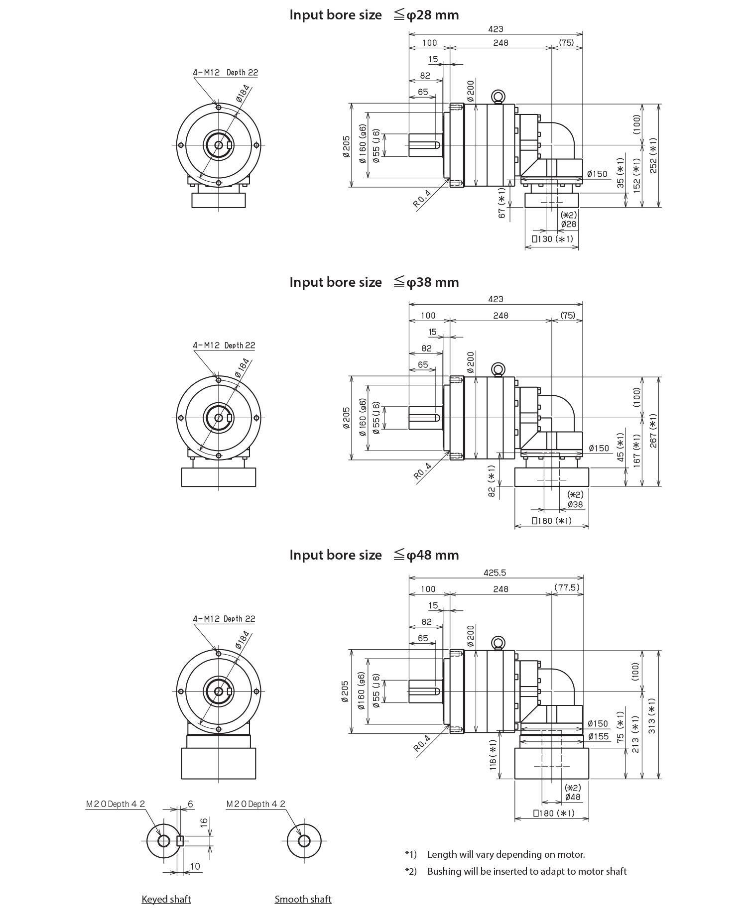 Our motor mounting codes can be configured automatically using our online selection tool. These tables supply the details behind these codes. The tables start with Input Bore measurement and the Part # Code, which are indicated at the end of every model code.
