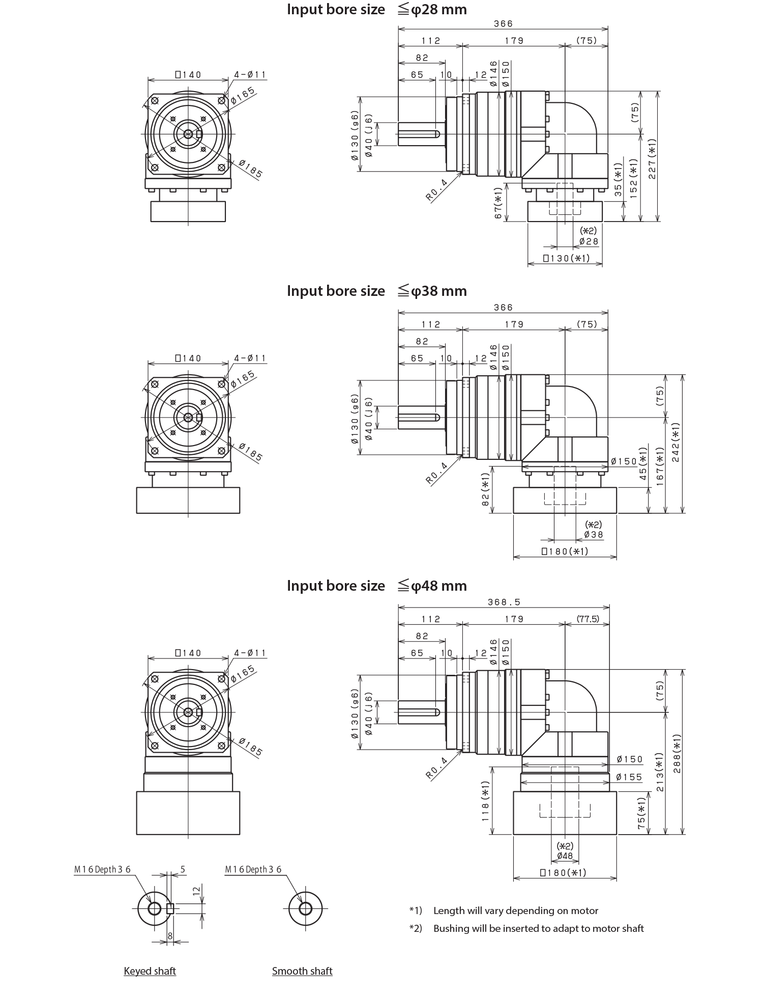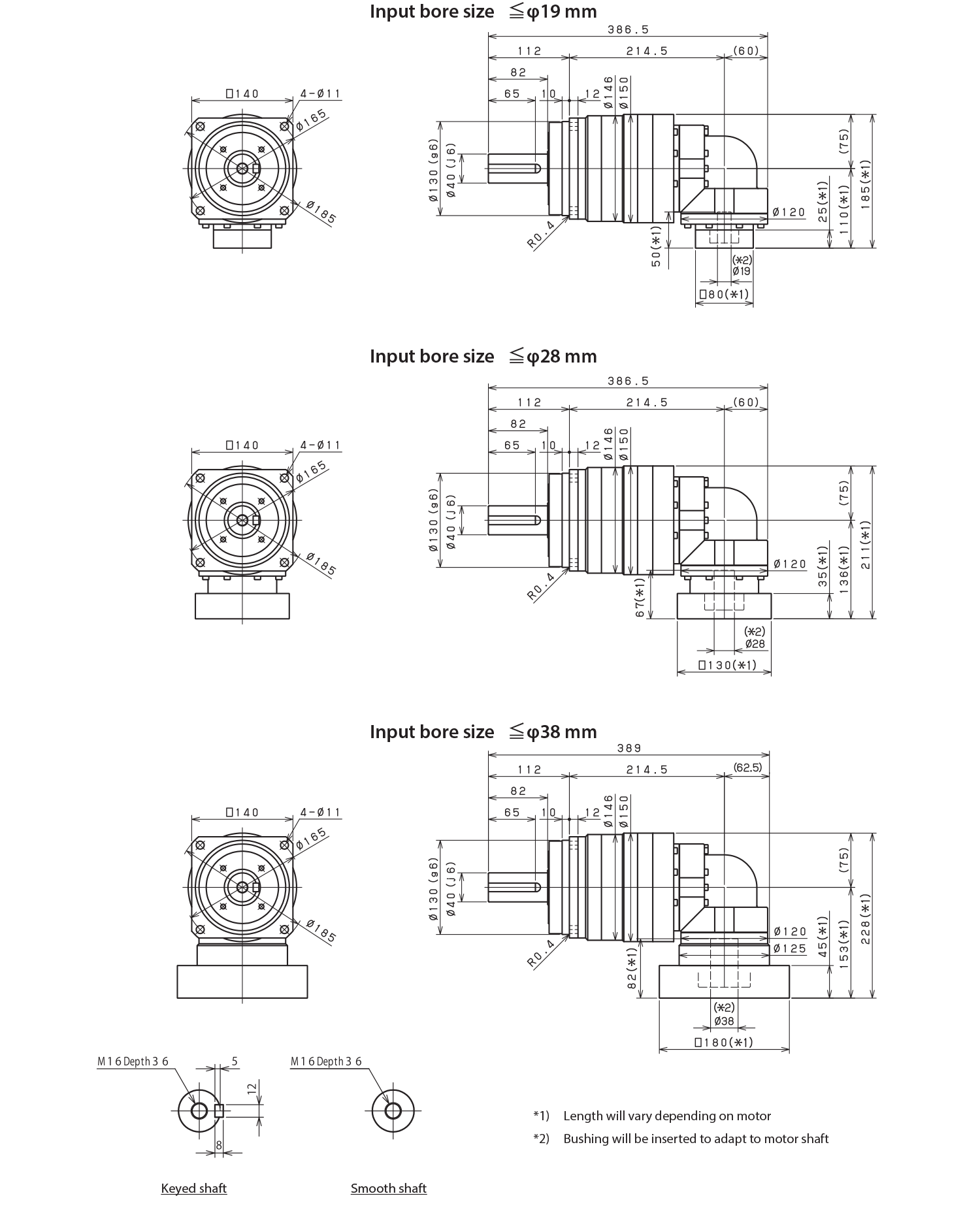 Our motor mounting codes can be configured automatically using our online selection tool. These tables supply the details behind these codes. The tables start with Input Bore measurement and the Part # Code, which are indicated at the end of every model code.