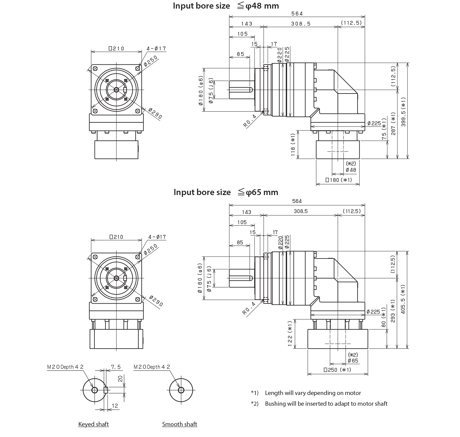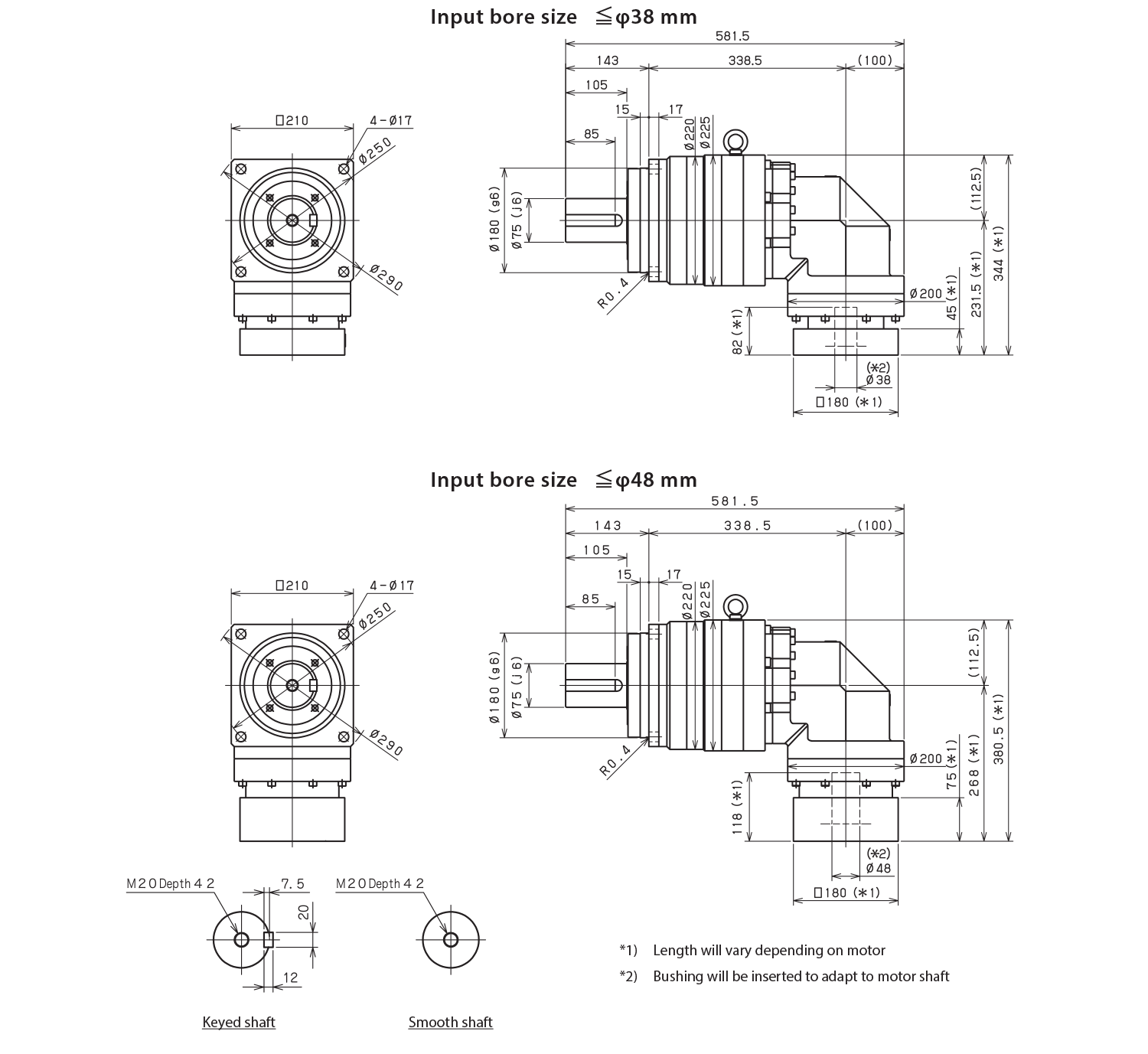 Our motor mounting codes can be configured automatically using our online selection tool. These tables supply the details behind these codes. The tables start with Input Bore measurement and the Part # Code, which are indicated at the end of every model code.
