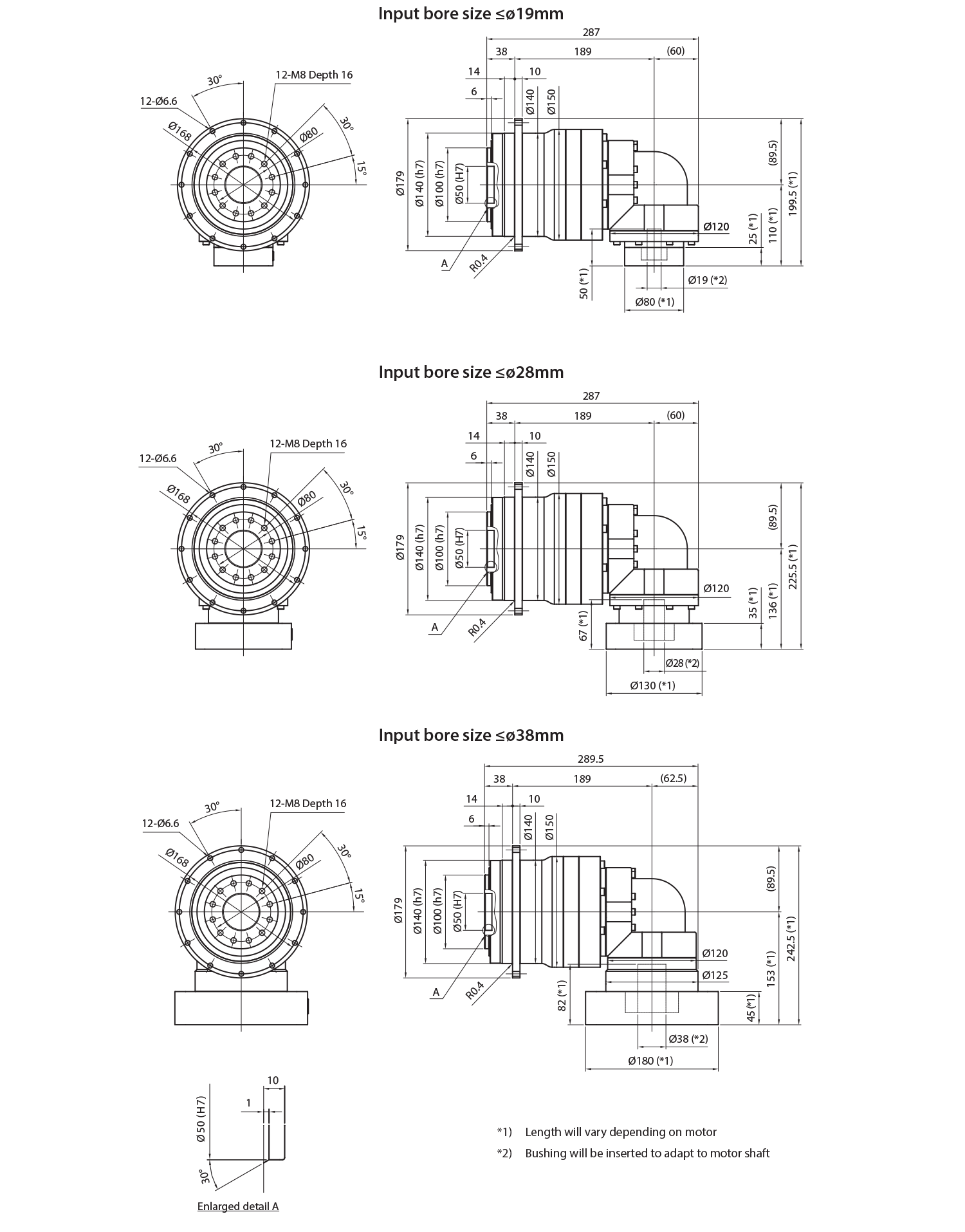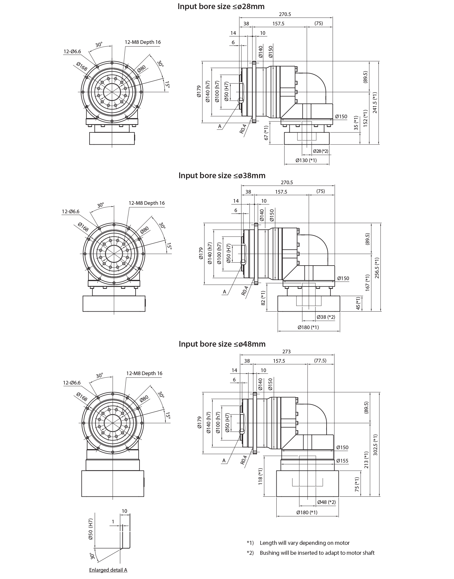 Our motor mounting codes can be configured automatically using our online selection tool. These tables supply the details behind these codes. The tables start with Input Bore measurement and the Part # Code, which are indicated at the end of every model code.