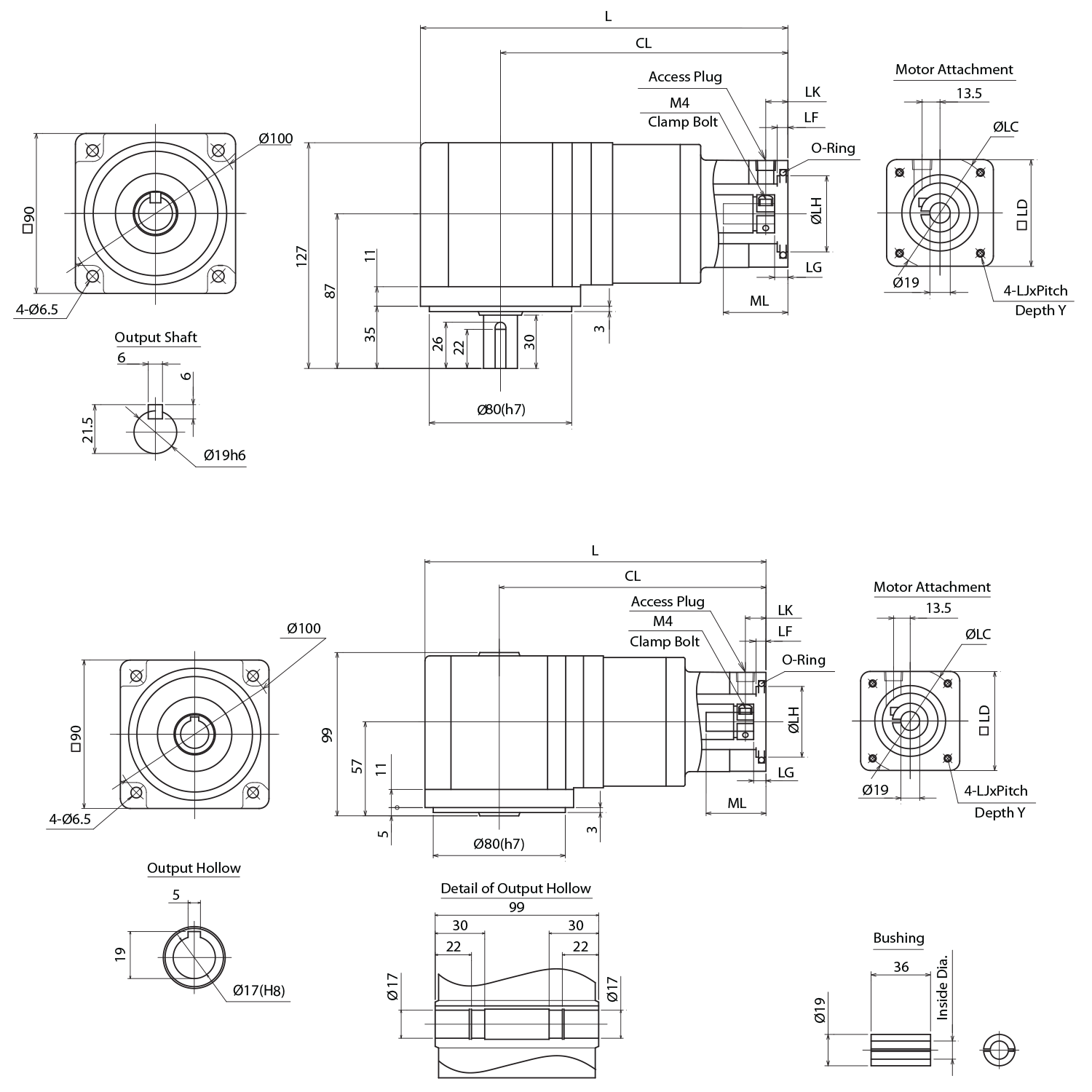 Weight (Hollow Output Shaft)[kg]4.04.04.04.0