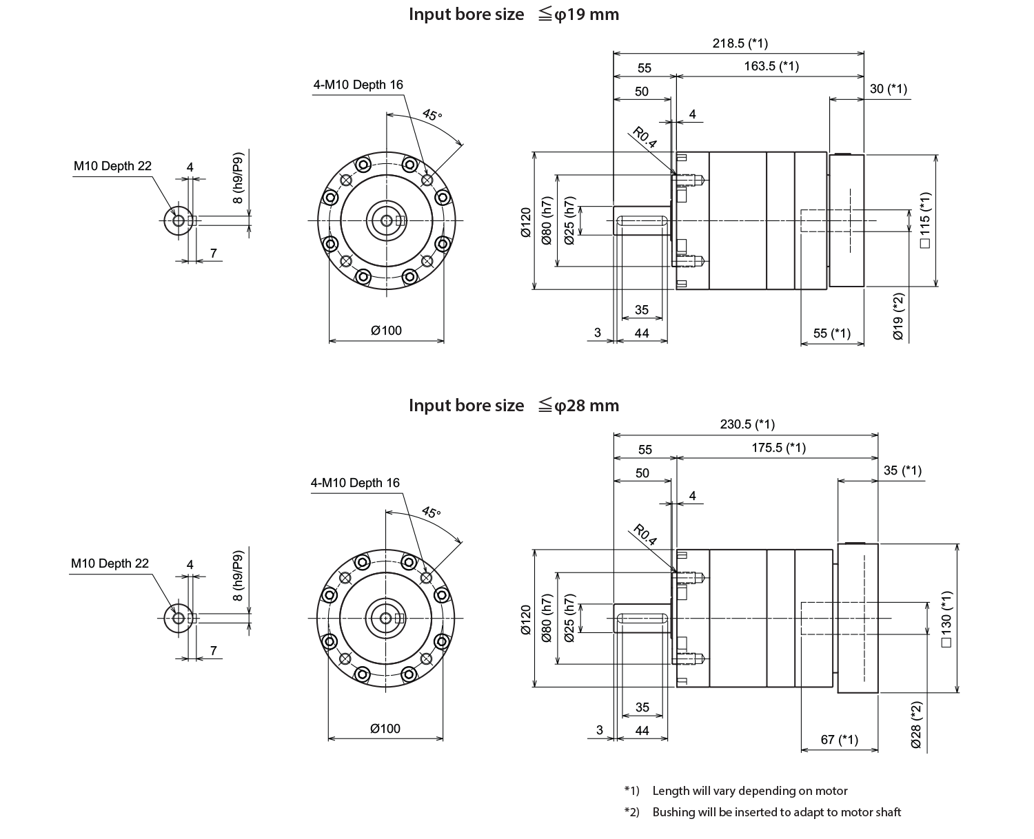 Input Bore (mm)Part # CodePilot (mm)BCD (mm)Tapped HolePilot Depth (mm)