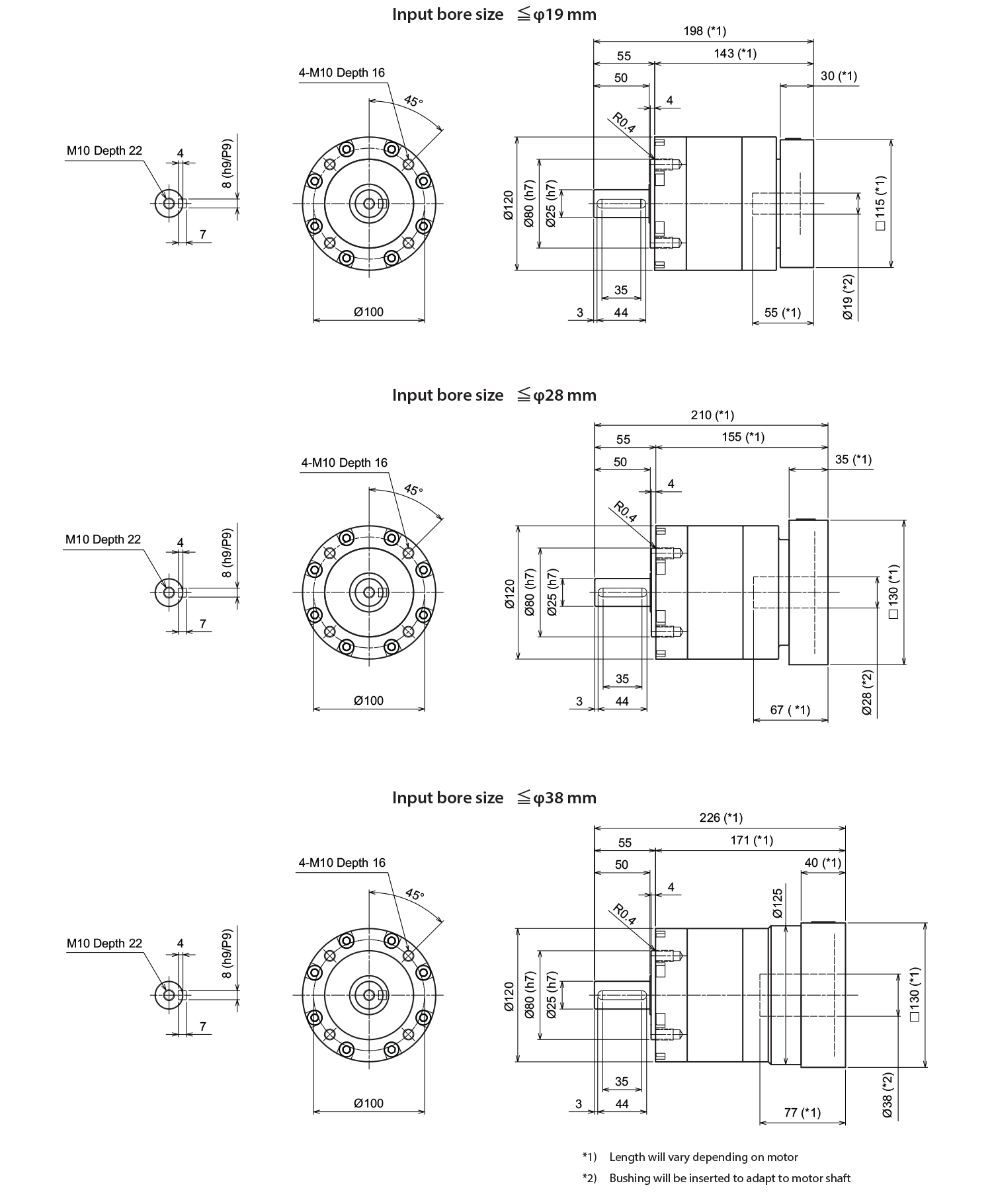 Our motor mounting codes can be configured automatically using our online selection tool. These tables supply the details behind these codes. The tables start with Input Bore measurement and the Part # Code, which are indicated at the end of every model code.