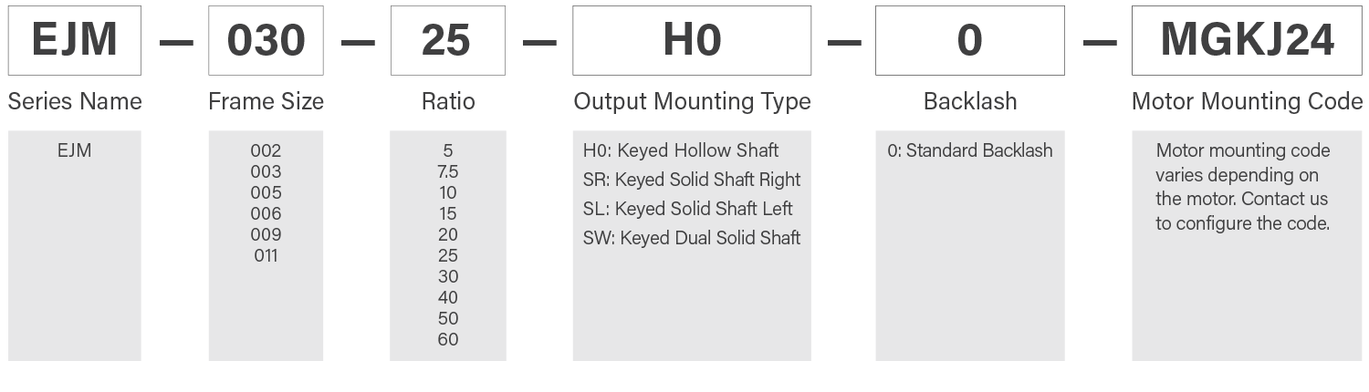 The EJM Series is a versatile, cost-effective servo-rated gearhead designed for high performance and durability. Available in six different frame sizes to meet a wide range of application requirements, it supports servo motors up to 7.5kW. With options for solid, hollow, and double extended output shafts, it offers flexible machine design.