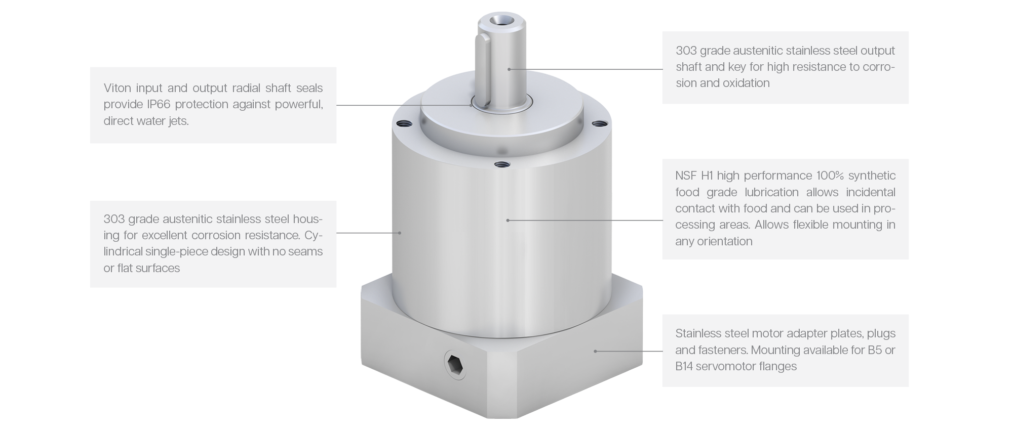 The HRL series from Nidec Drive Technology is a planetary product that excels in corrosive, high pressure washdown environments. Made completely from 303 grade austenitic stainless steel, HRL is a safe solution for servo drive systems close to or fully integrated in the process. A seamless, single piece housing helps reduce build-up of bacteria while its IP66 rating allows for high pressure cleaning with water, steam or caustic chemicals. HRL has flexible adaptation to standard B5 style servomotors as well as B14 style stainless servomotors. Available in three sizes and a complete range of reduction ratios, HRL is a robust, reliable, maintenance-free solution allowing our customers to reduce risk and increase productivity.