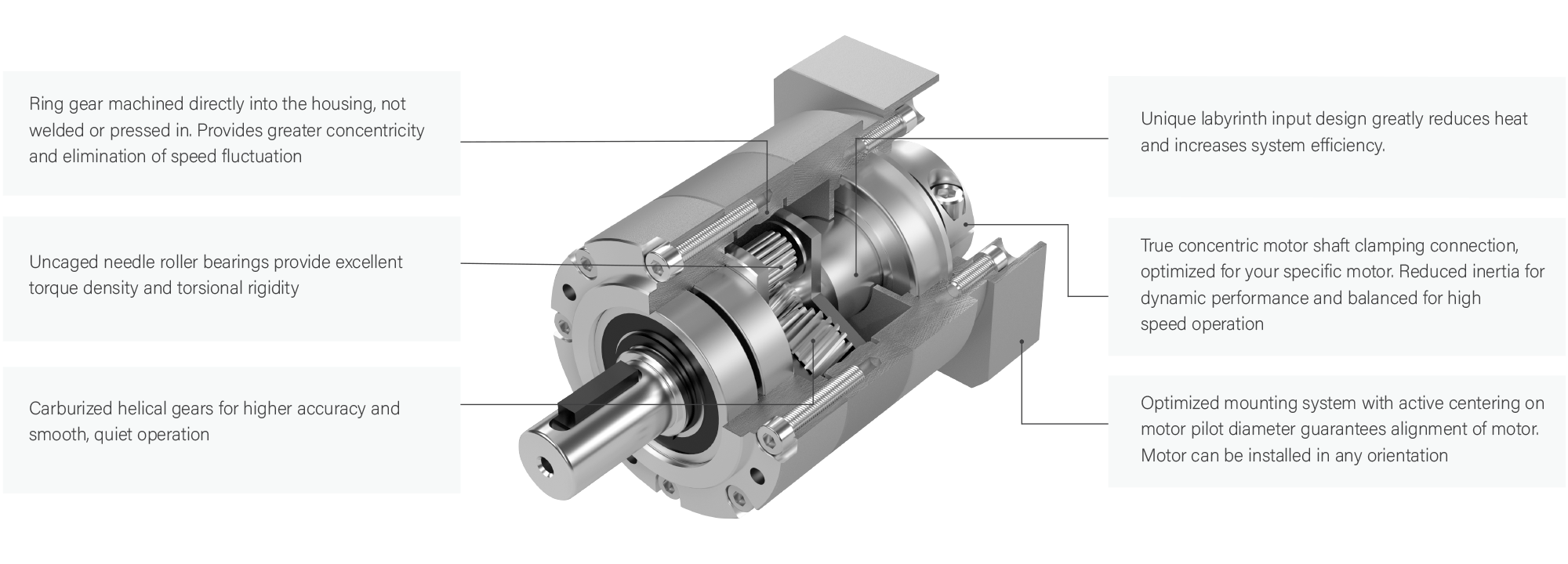 PRE is part of the latest generation economy inline planetary gear reducers from Nidec Drive Technology Corporation. The PRE redefines the economy planetary gear reducer segment by featuring helical cut gearing and a robust internal structure. Our customers benefit from a cost-effective, flexible, reliable design that can be adapted into a wide range of servo and stepper motor axes.