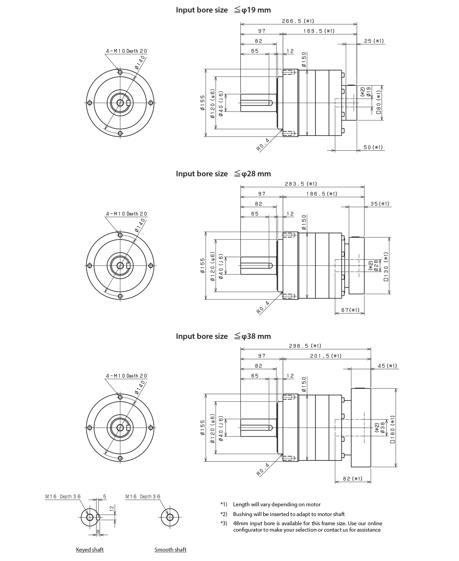 3. Permitted 10,000 times during service life. Based on 10% of maximum radial load and smooth output shaft