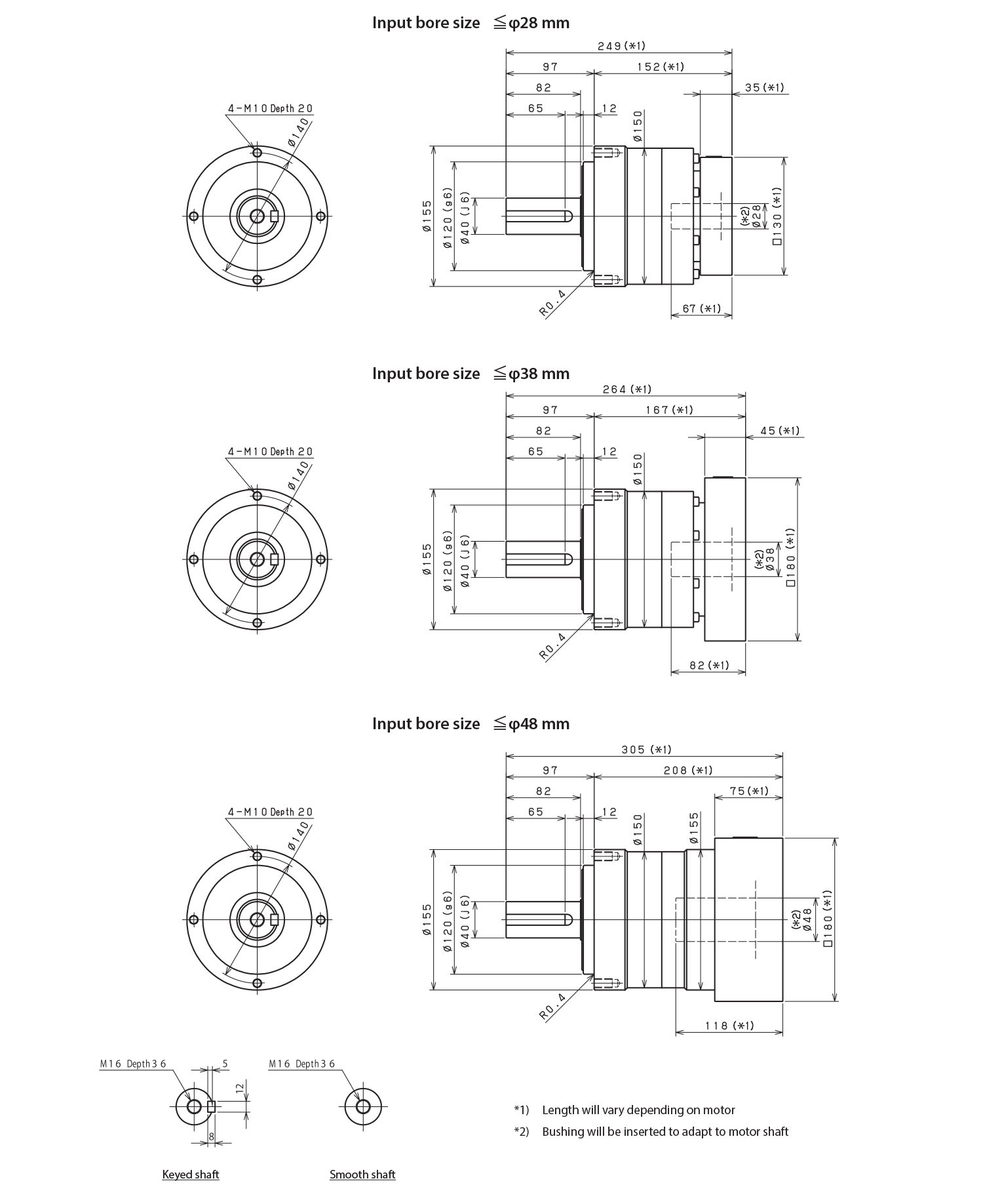 Our motor mounting codes can be configured automatically using our online selection tool. These tables supply the details behind these codes. The tables start with Input Bore measurement and the Part # Code, which are indicated at the end of every model code.