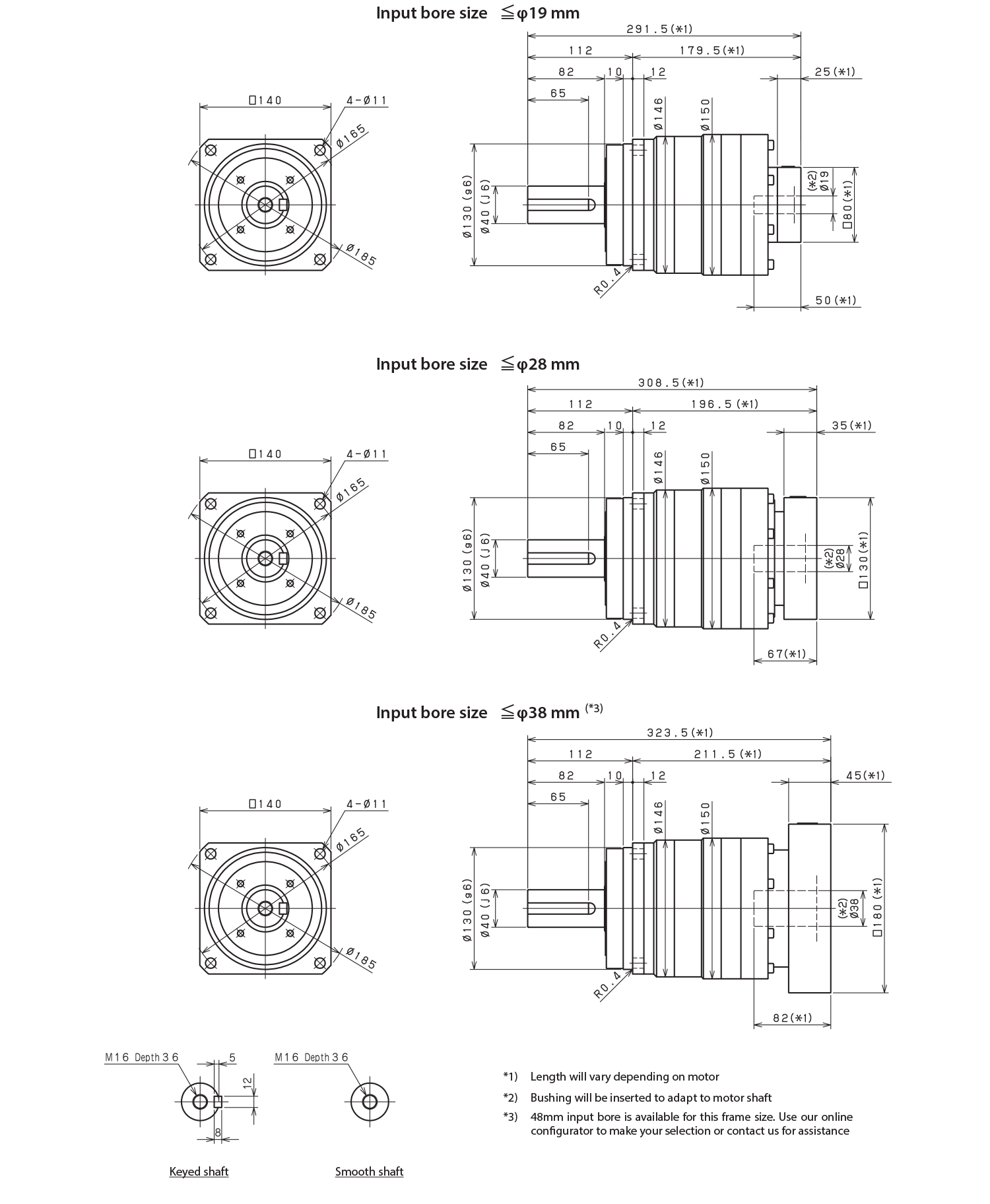 Our motor mounting codes can be configured automatically using our online selection tool. These tables supply the details behind these codes. The tables start with Input Bore measurement and the Part # Code, which are indicated at the end of every model code.