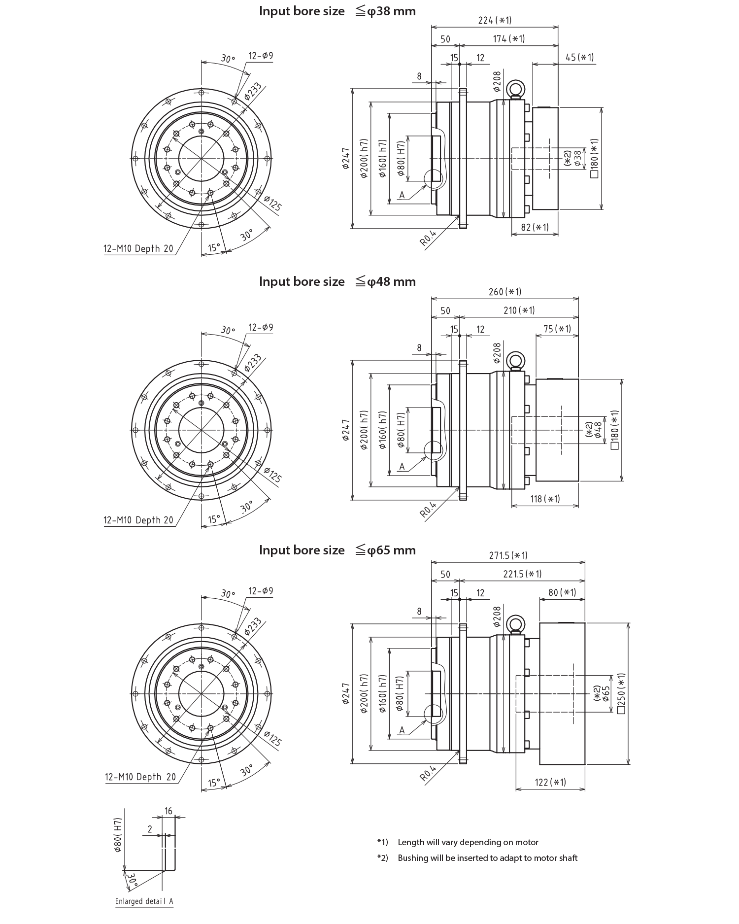 Maximum Torsional Backlash[arc-min]*13Standard ≤ 3 / Reduced ≤ 1Standard ≤ 3 / Reduced ≤ 1Standard ≤ 3 / Reduced ≤ 1Standard ≤ 3 / Reduced ≤ 1