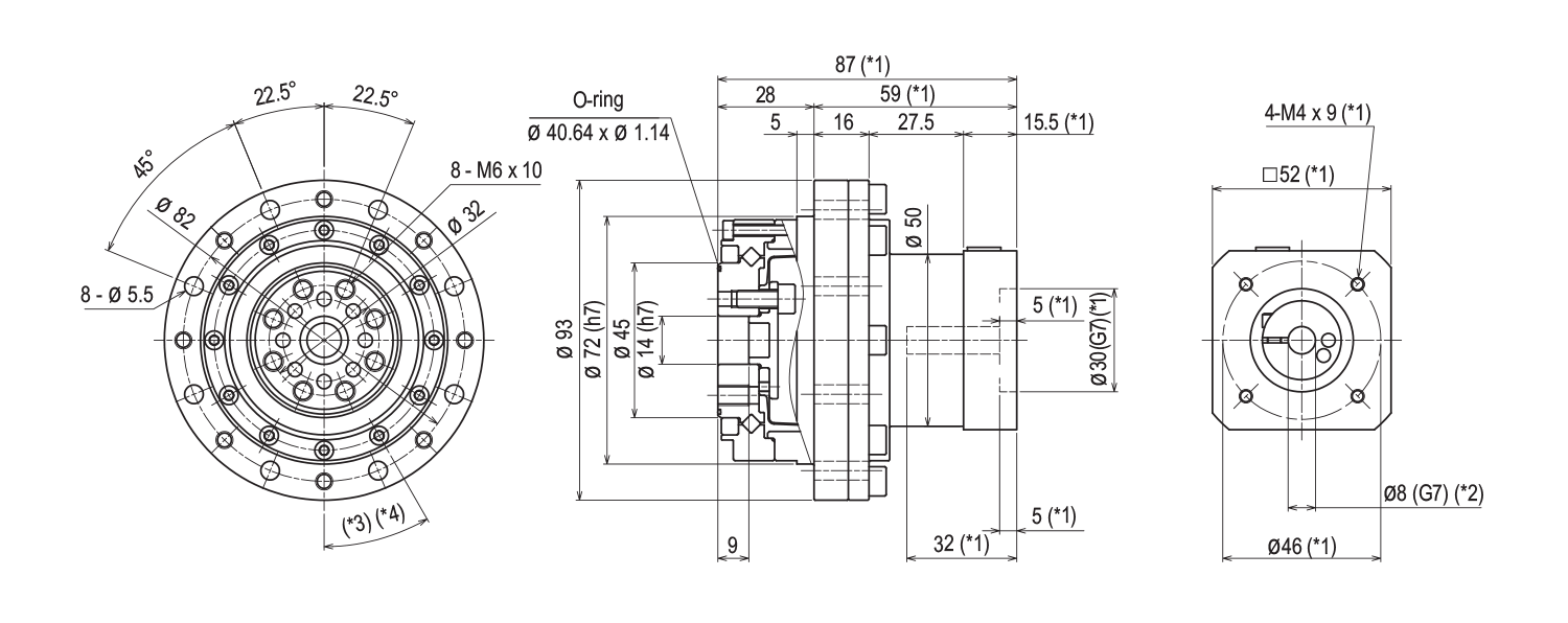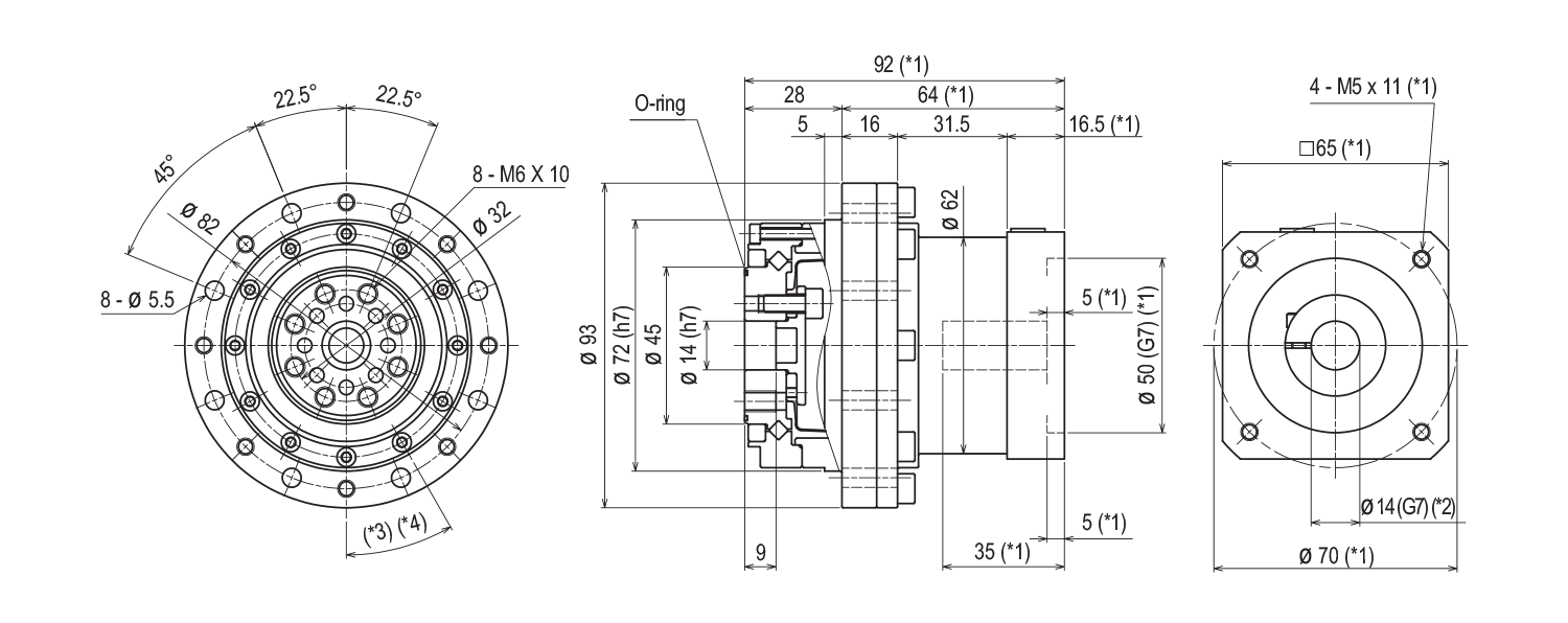 WPG-50-□-CR-14-□ (< 8 Input shaft diameter ≦ 14) Dimensions